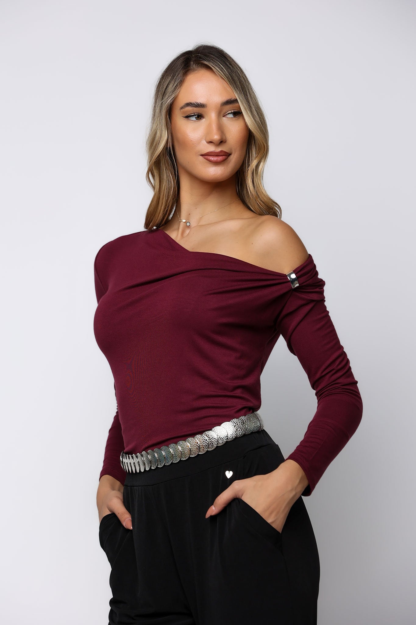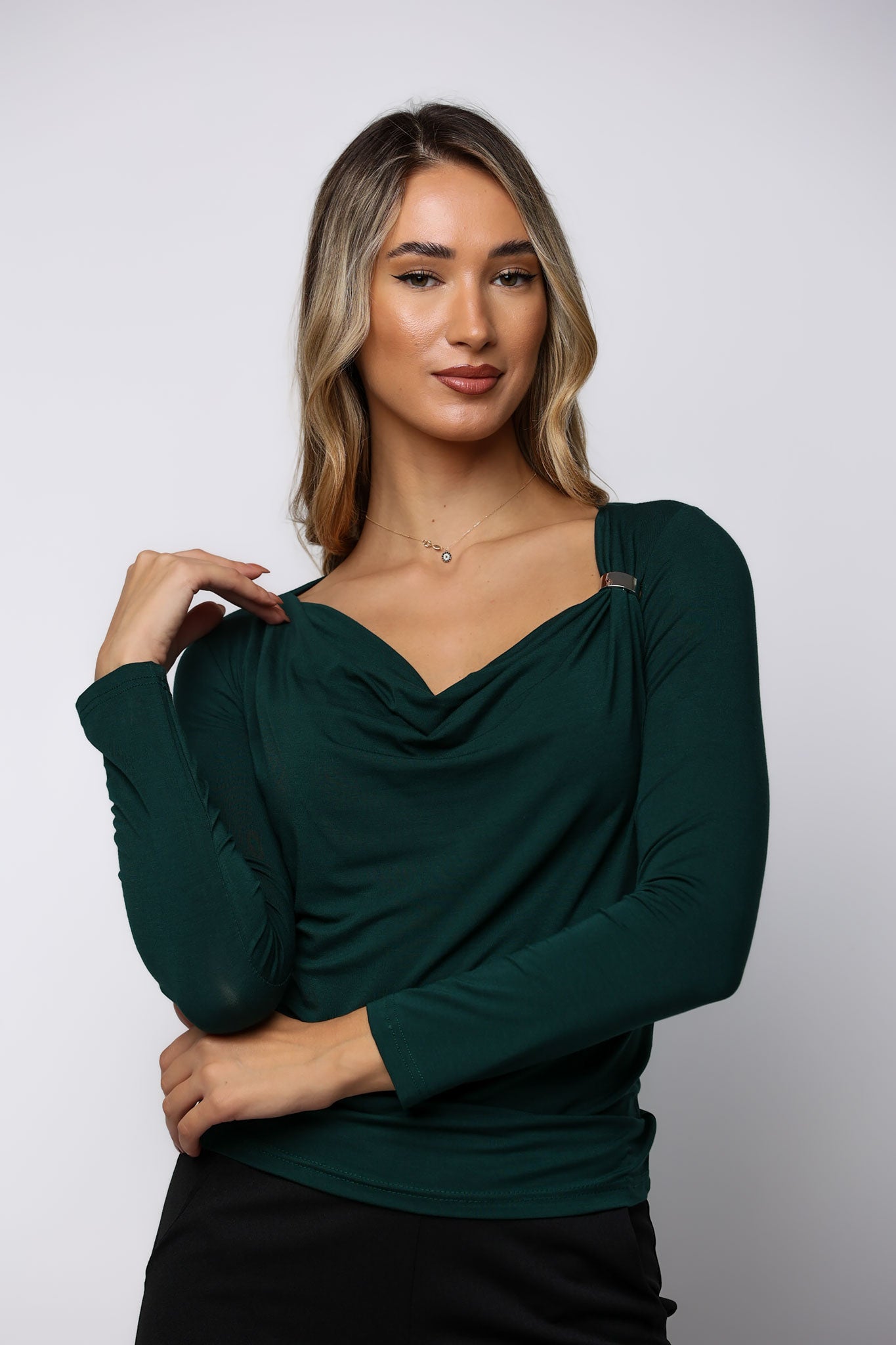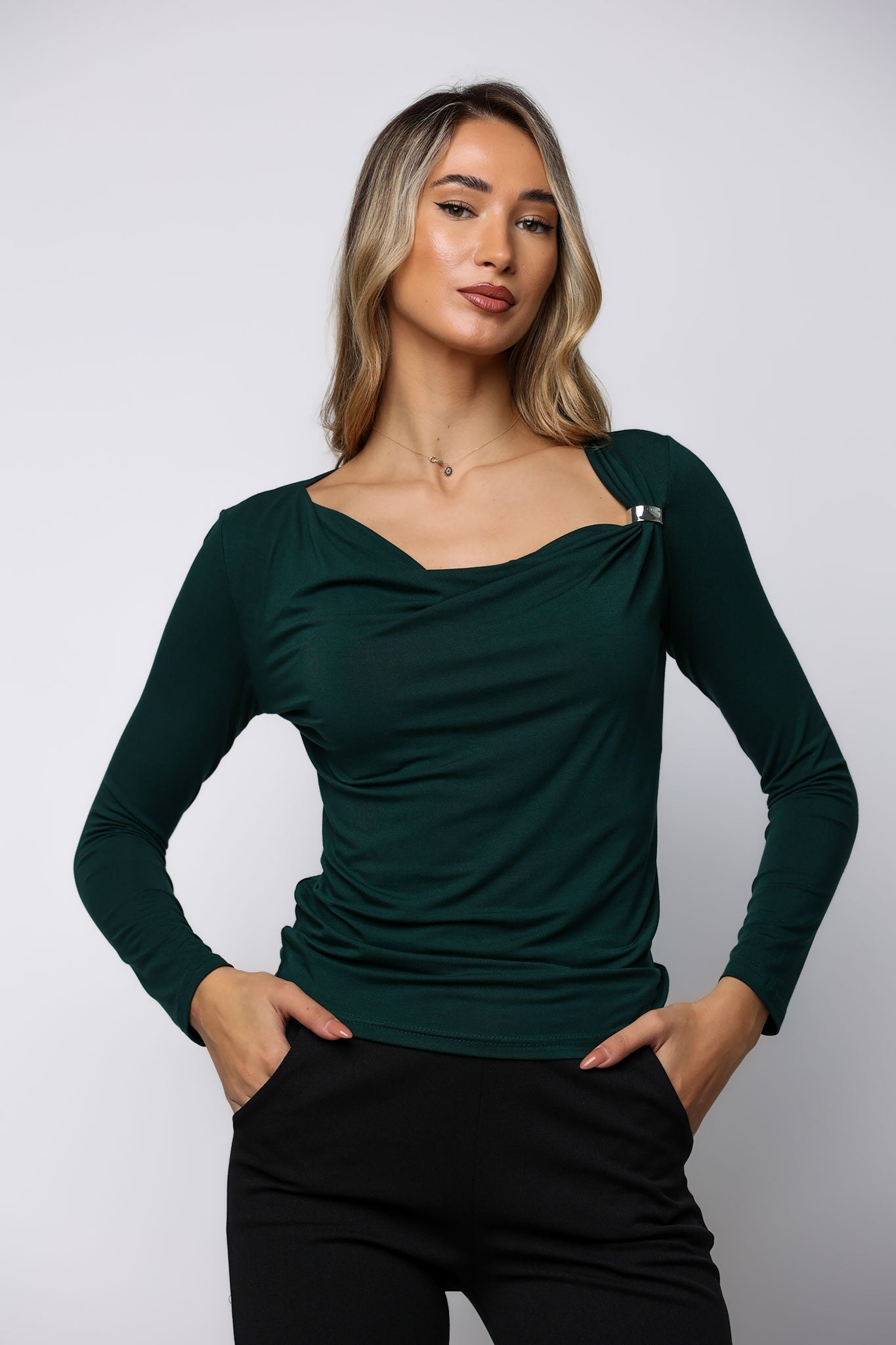 Μπλούζα ντραπέ με σφυρήλατο κόσμημα