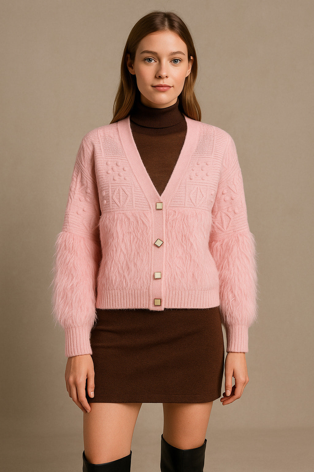 Με fluffy τρίχα στο μισό μέρος της ζακέτας και τα μανίκια