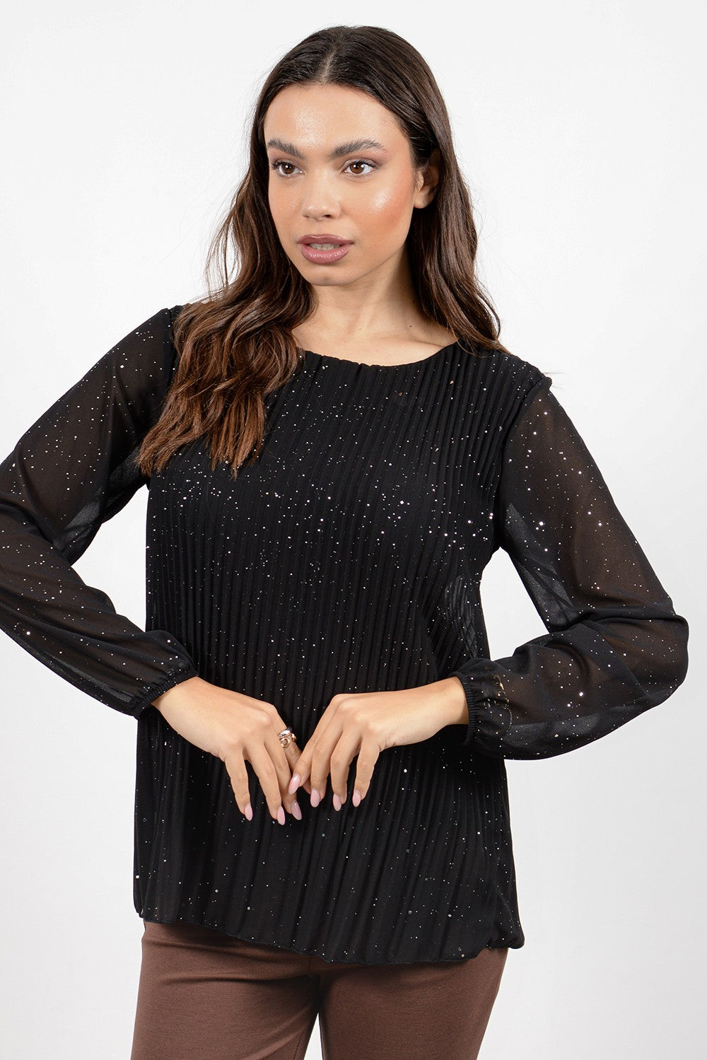 Μπλούζα πλισέ με glitter