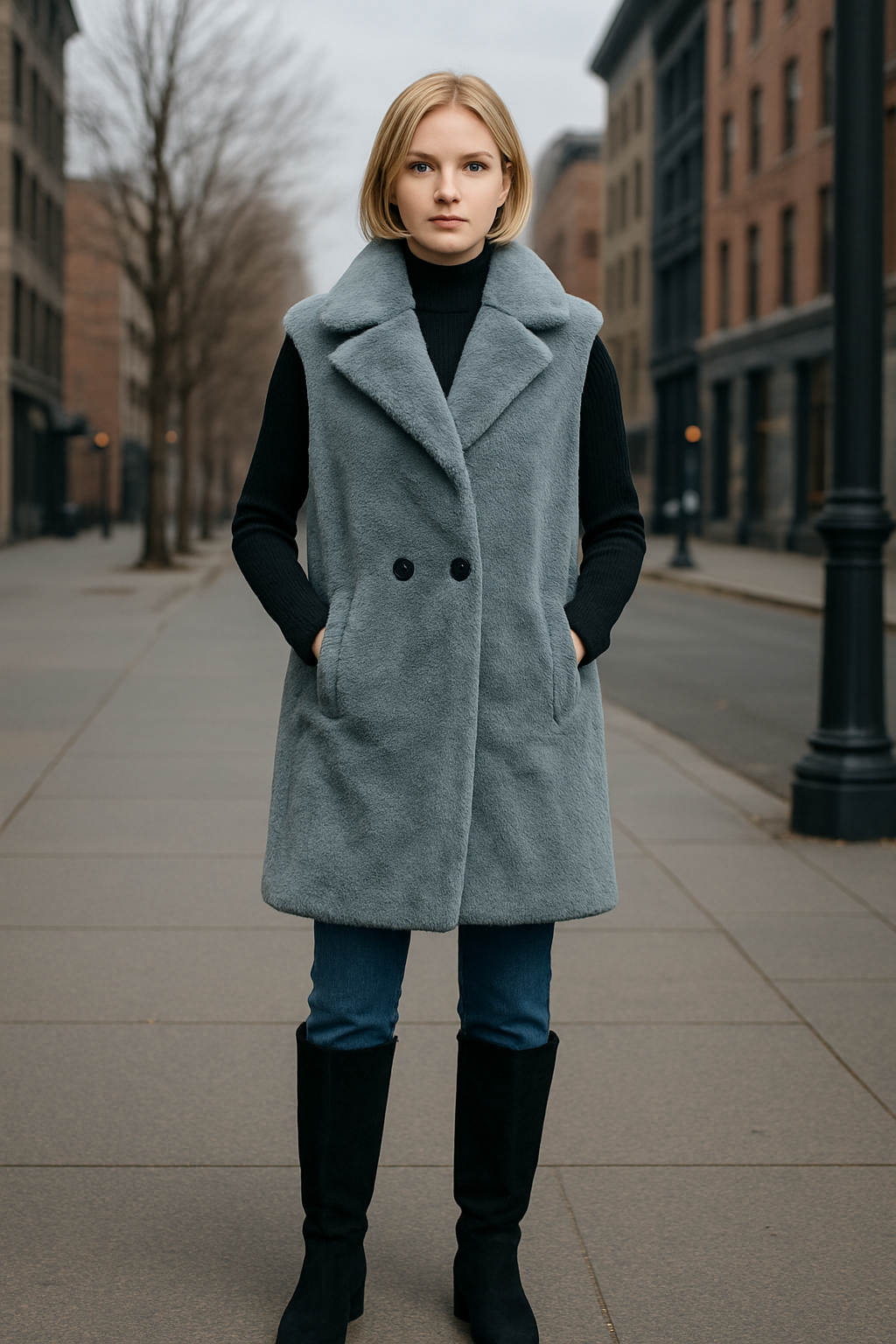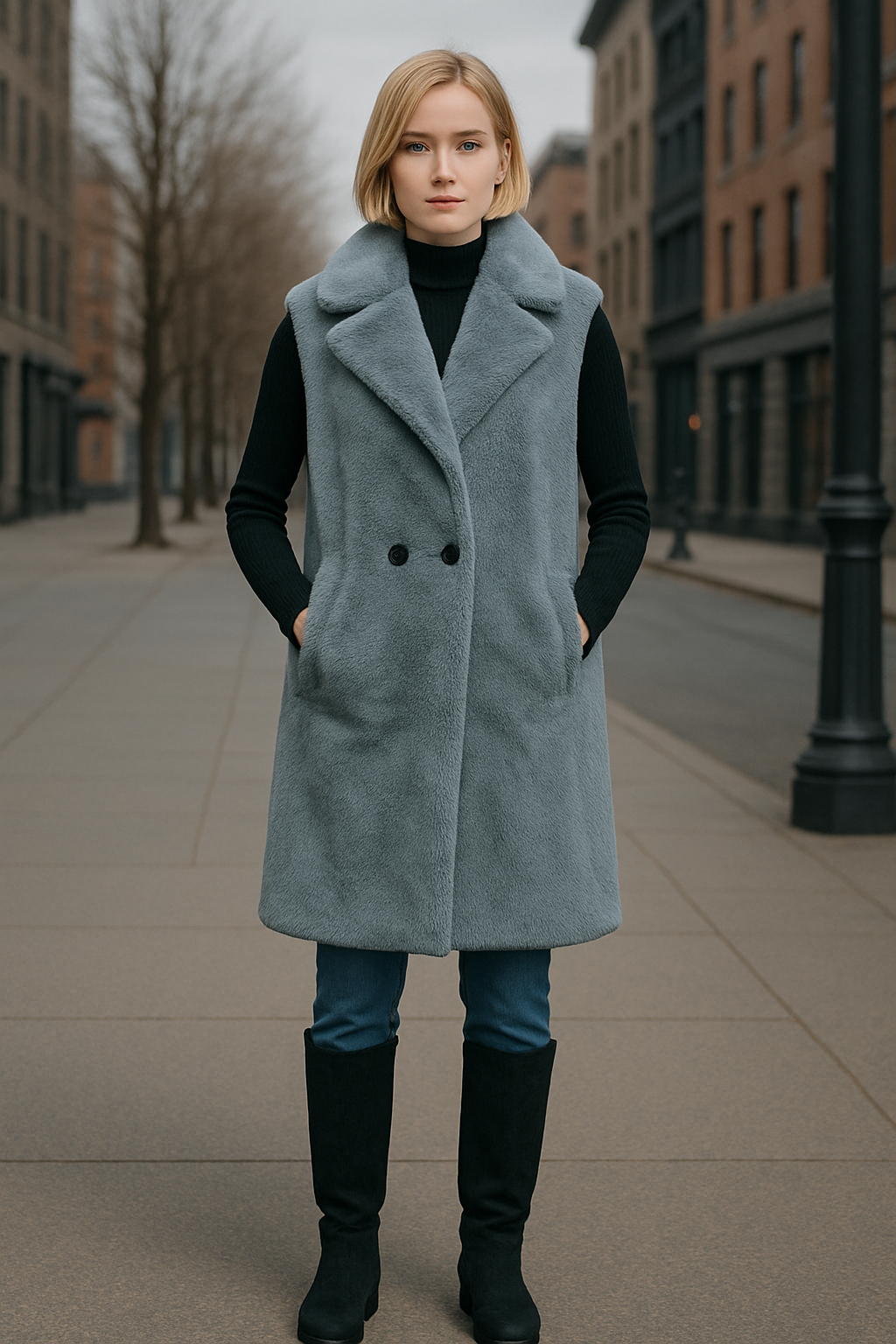 Ημίπαλτο αμάνικο με οικολογική γούνα