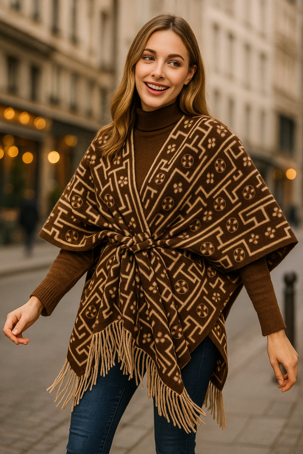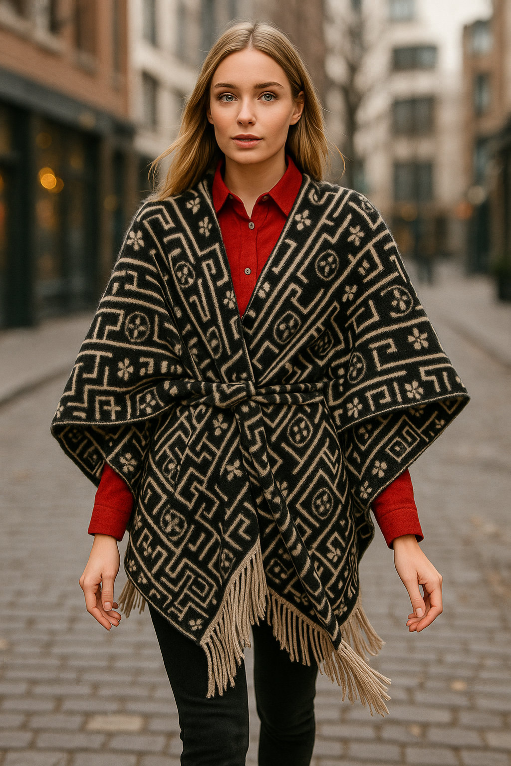 Πλεκτή, ζεστή, με κρόσσια εμπρός