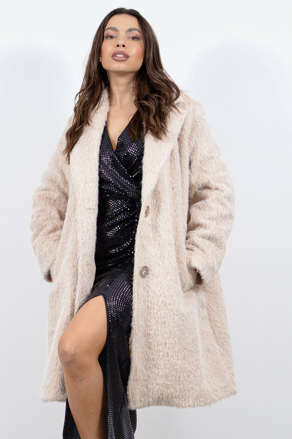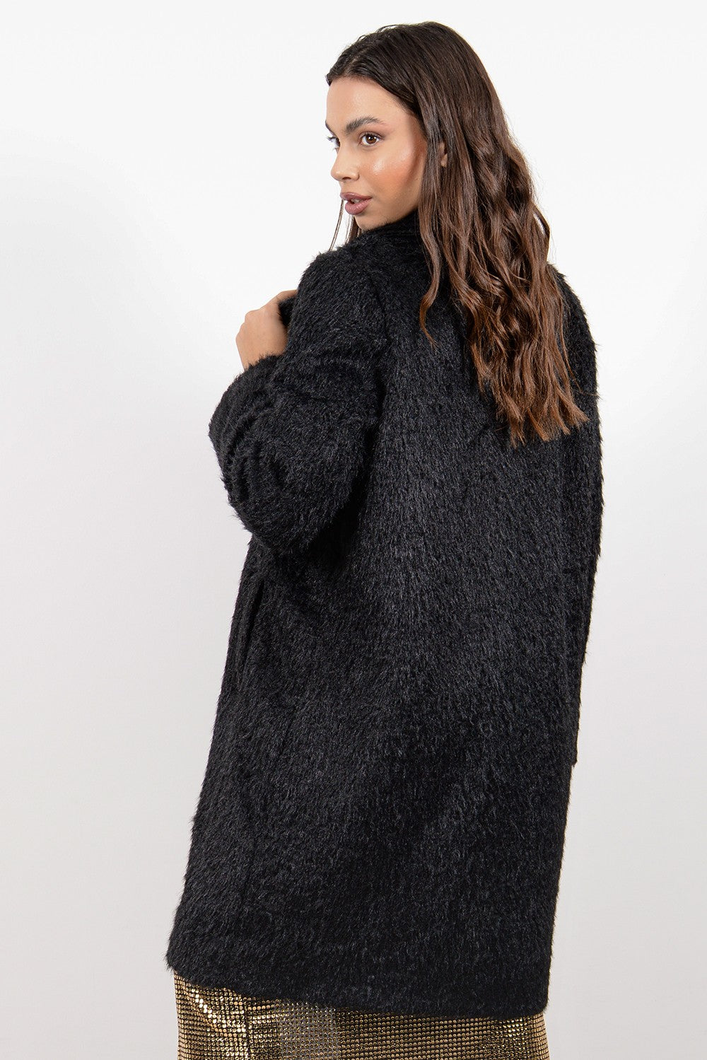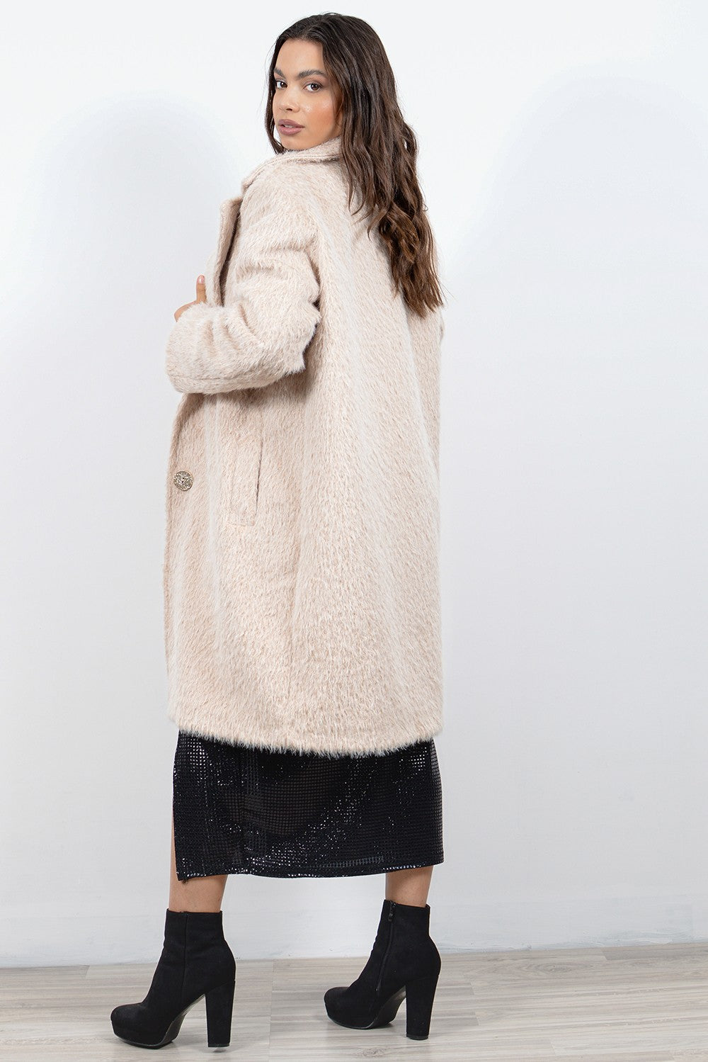 Γούνινο ημίπαλτο, με ξυρισμένη οικολογική γούνα, σε φαρδιά γραμμή