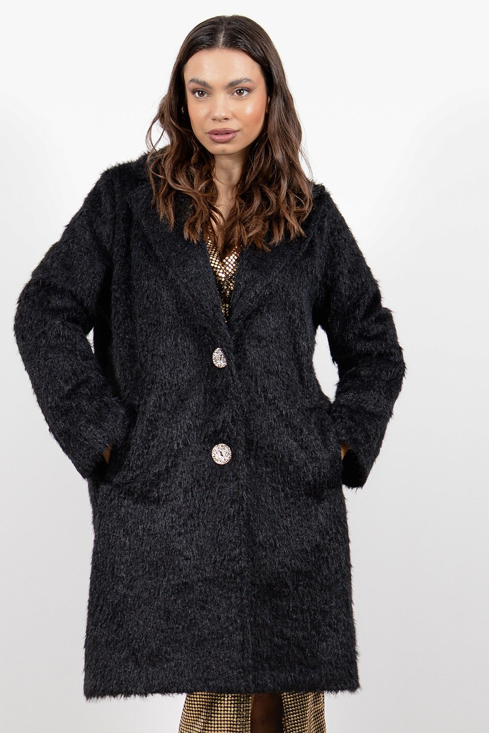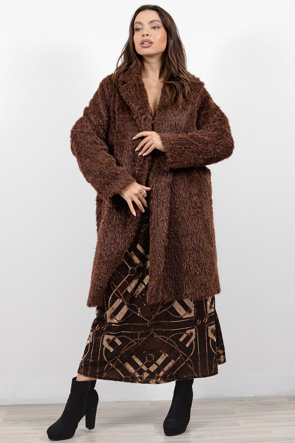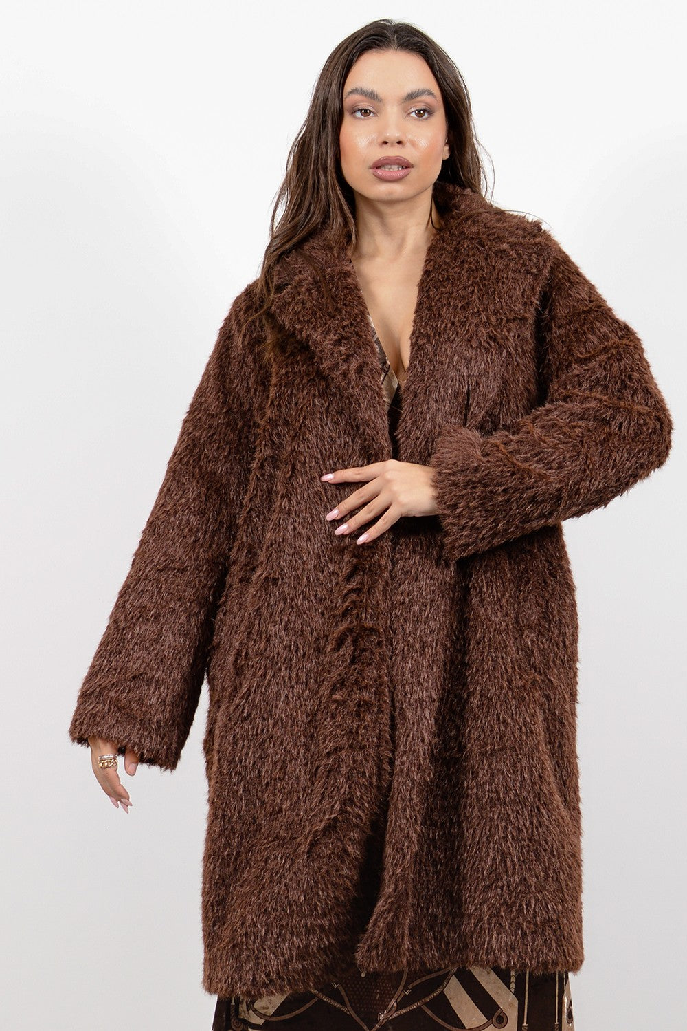 Γούνινο ημίπαλτο, με ξυρισμένη οικολογική γούνα, σε φαρδιά γραμμή