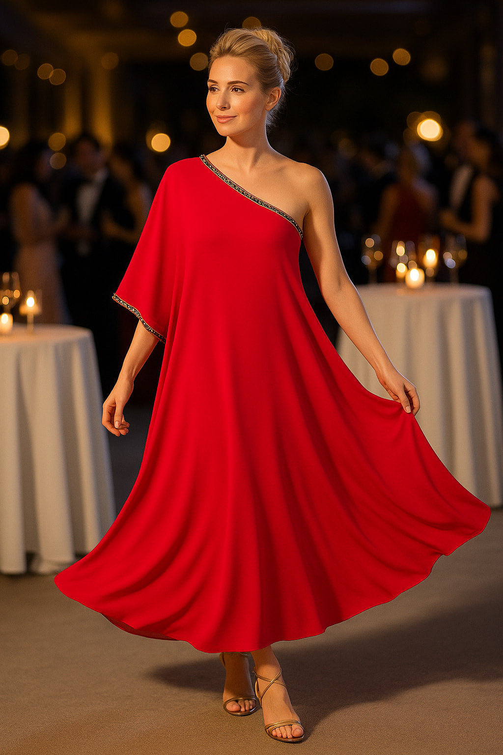 Φόρεμα maxi jersey με έναν ώμο και αλυσίδα