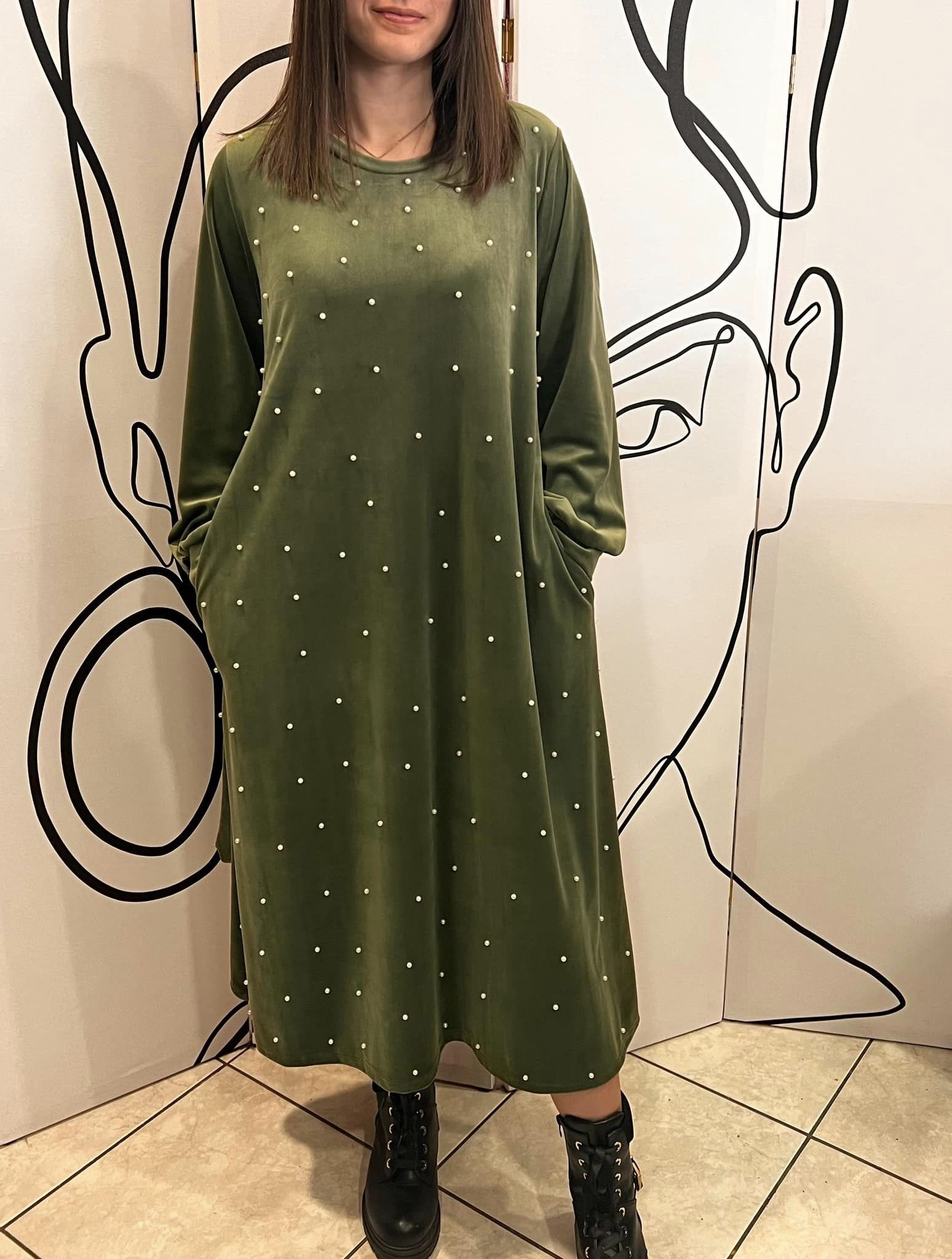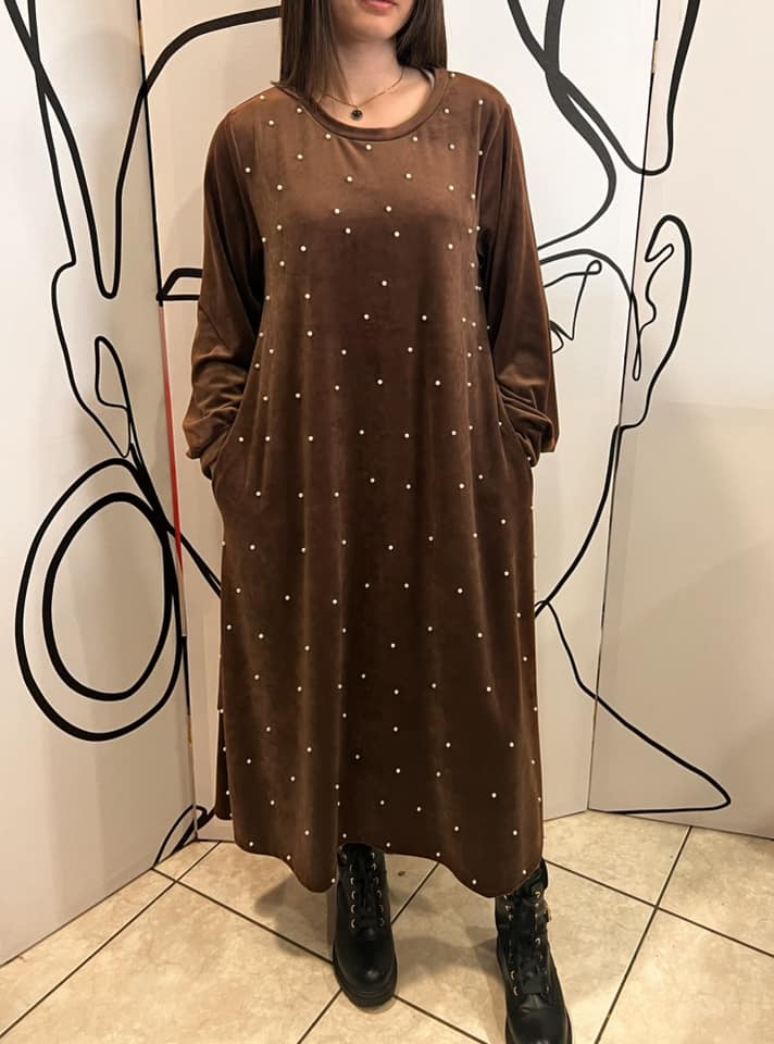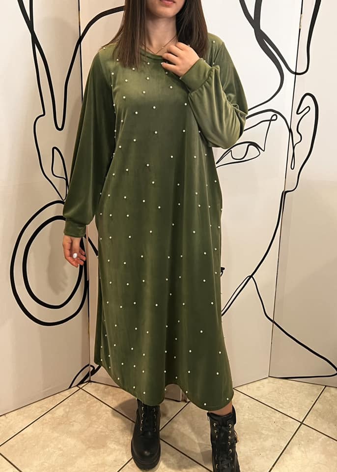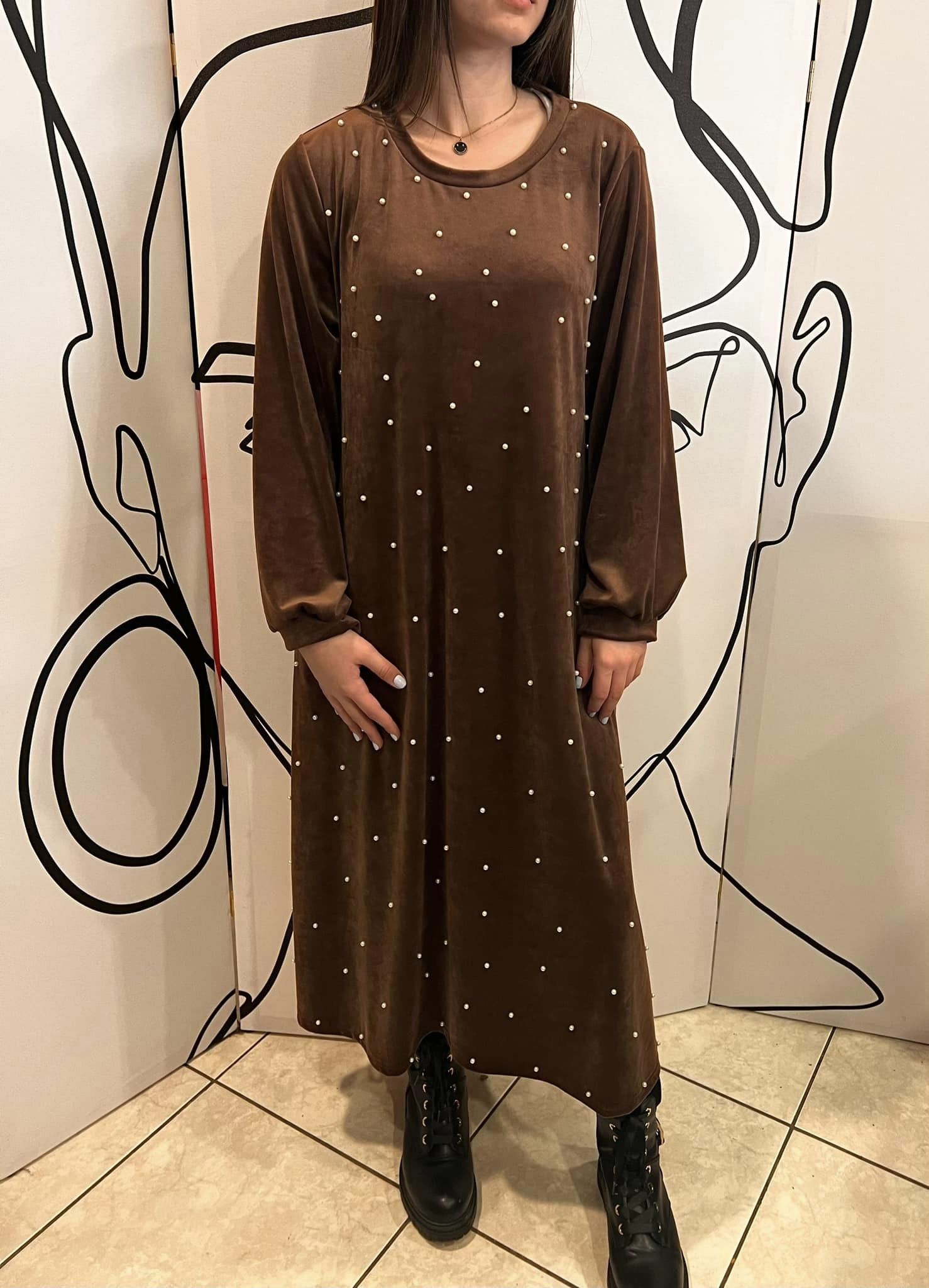 Φόρεμα maxi εβαζέ βελουτέ με πέρλες