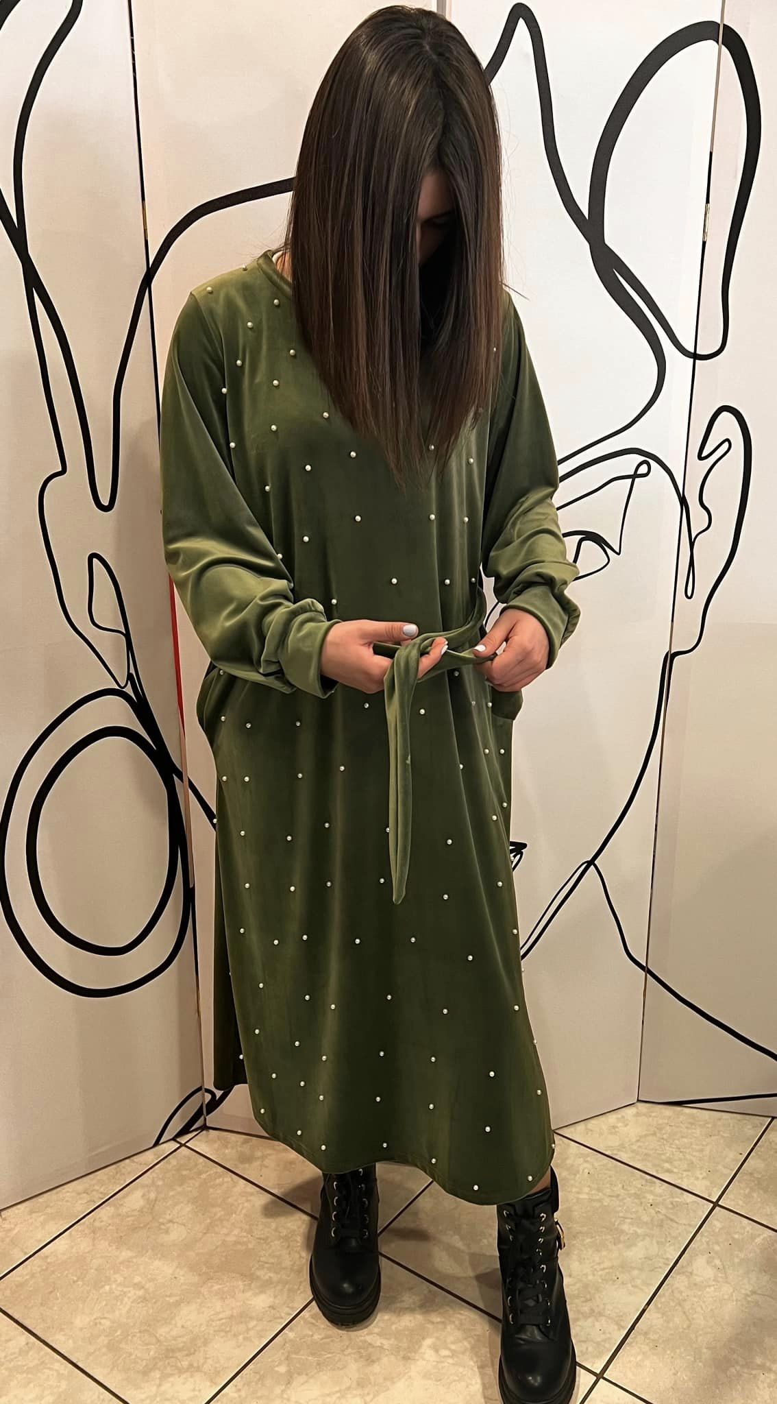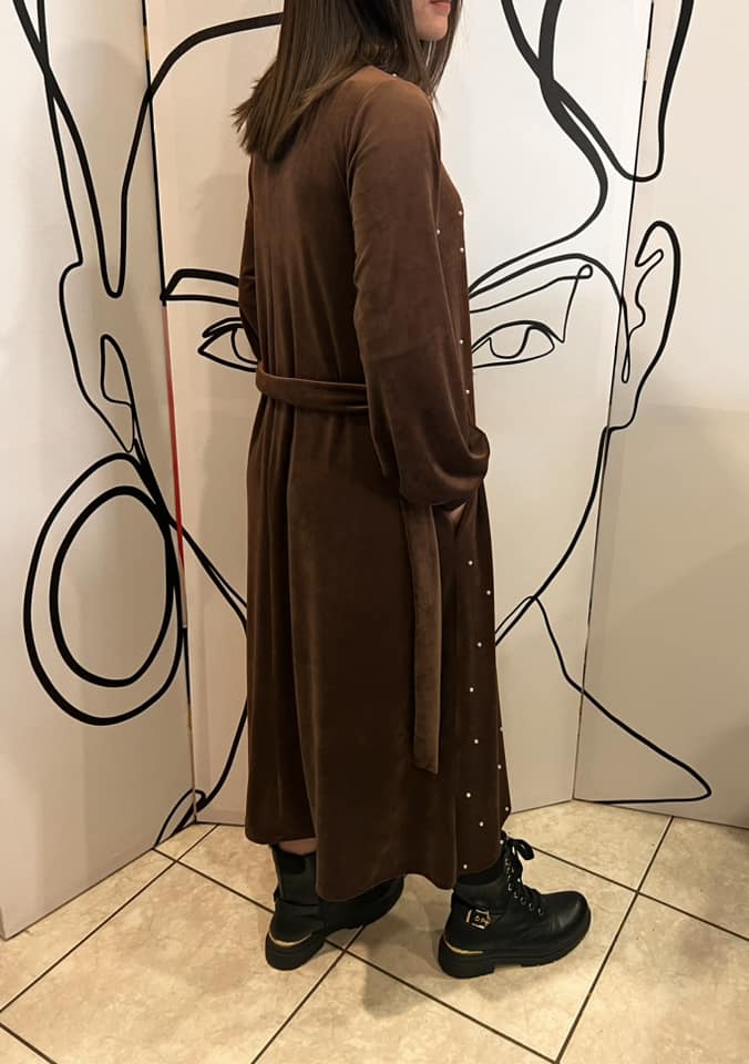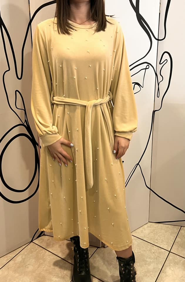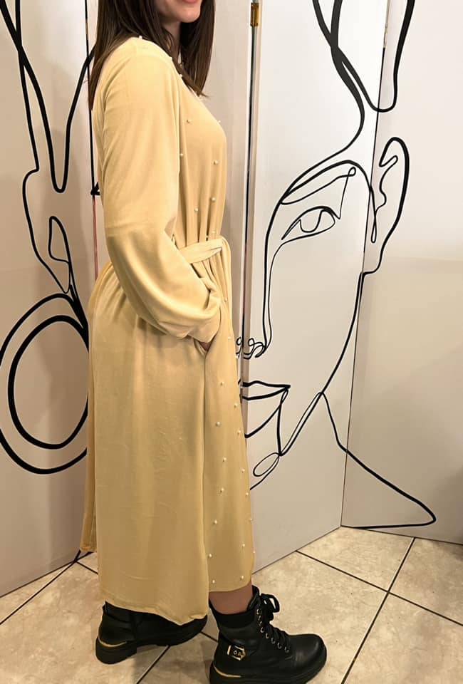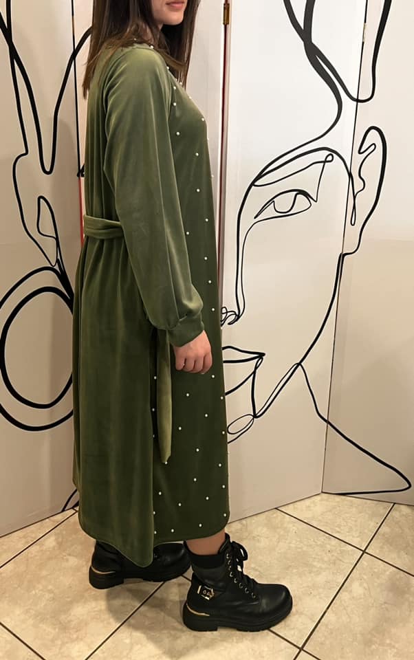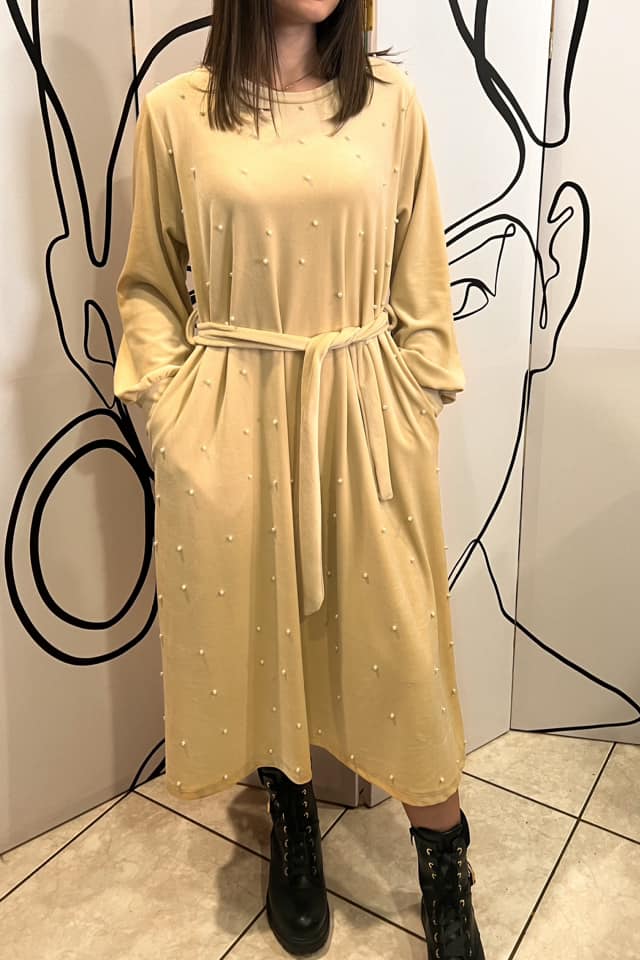 Φόρεμα maxi εβαζέ βελουτέ με πέρλες