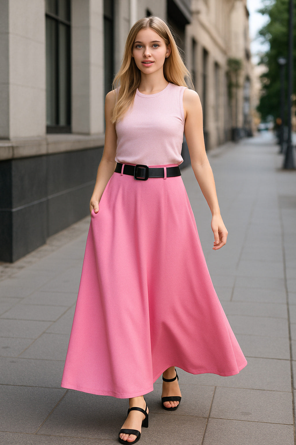 Φούστα maxi κρεπ σε Α γραμμή με ζώνη