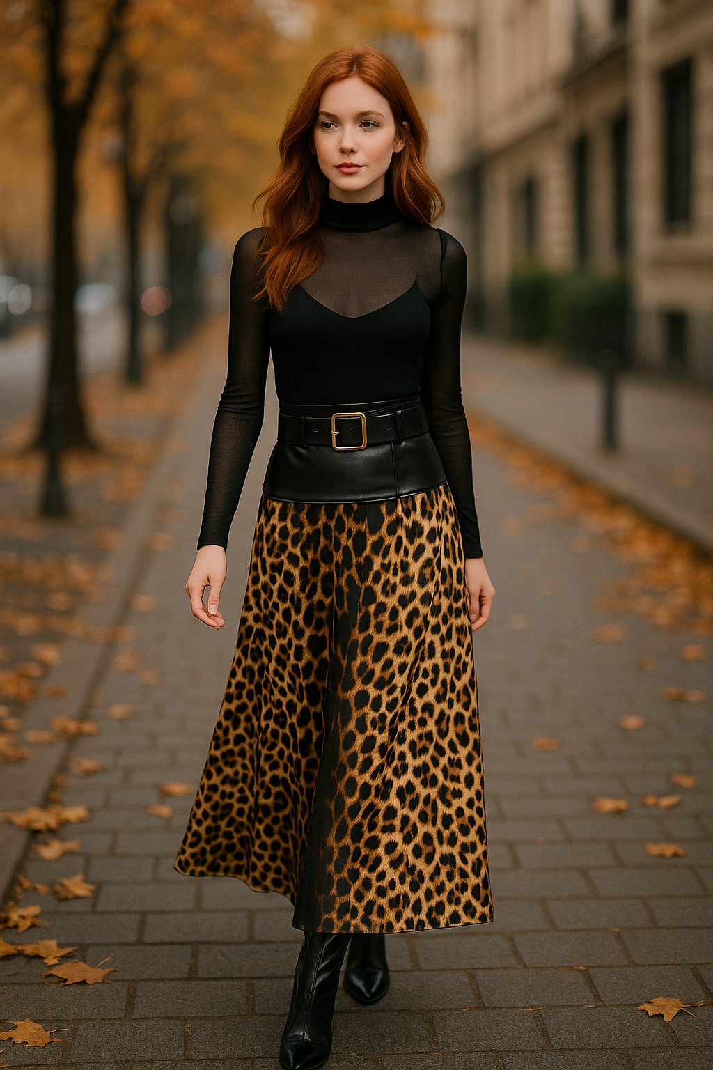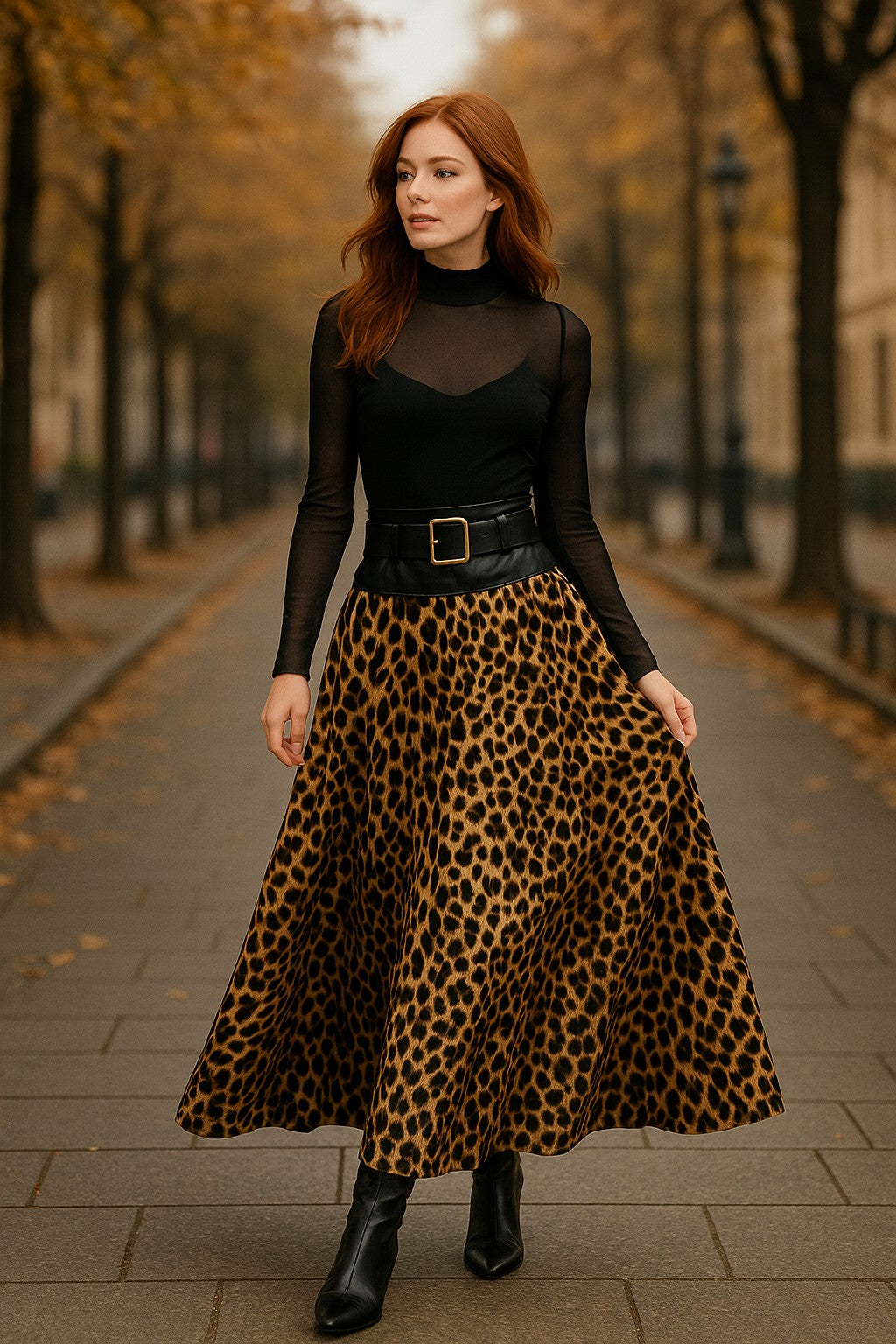 Σατινέ υφή από τη μπάσκα ως κάτω σε animal printed leopard