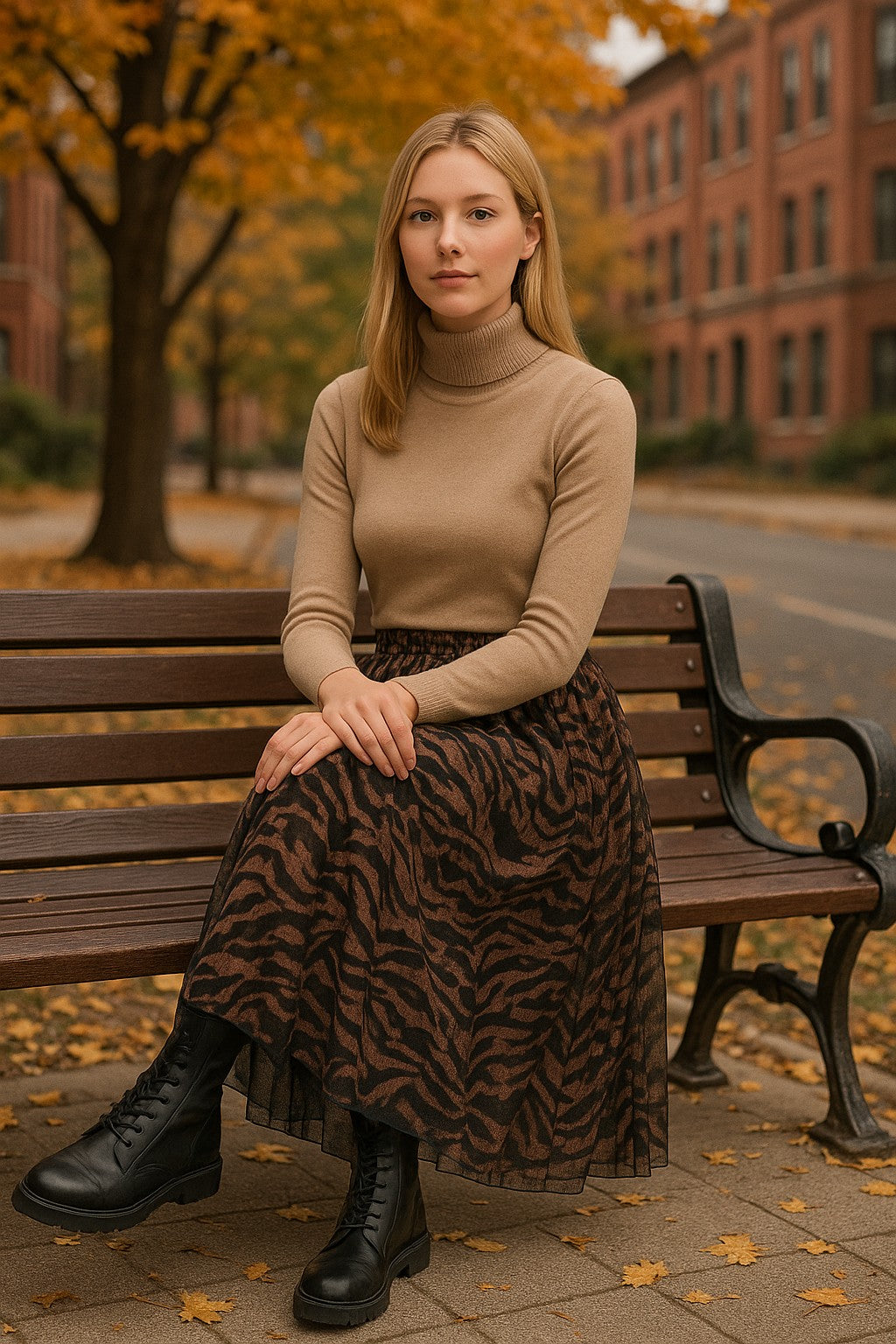 Με κυρίαρχα χρώματα το καφέ και το μαύρο σε animal print σχέδιο