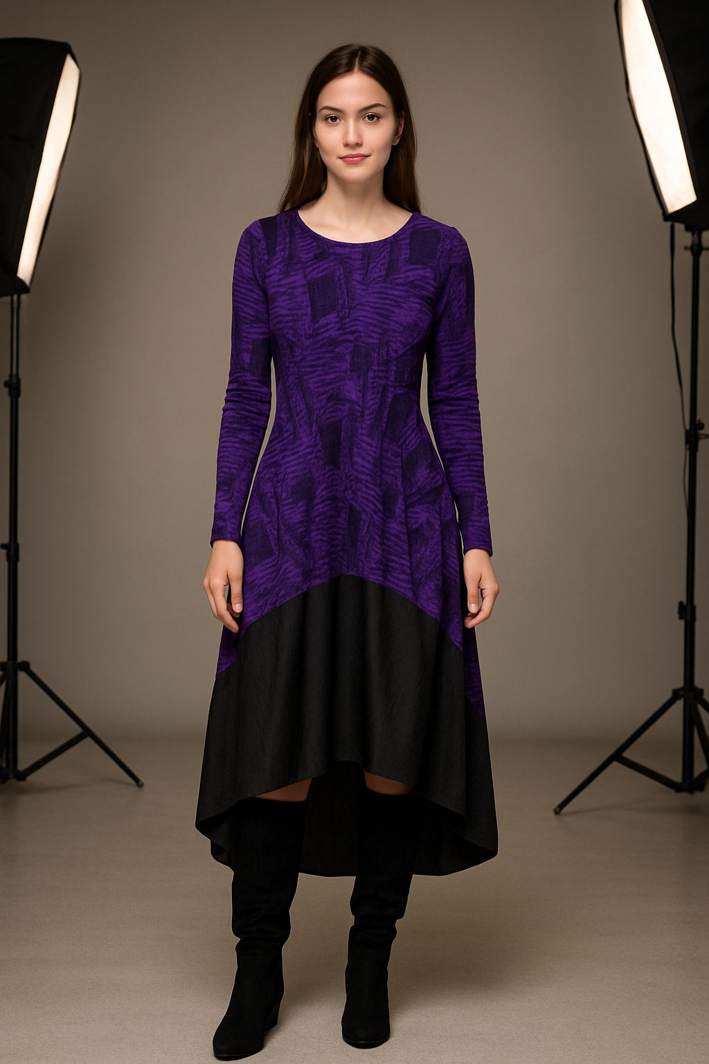 Φόρεμα midi ασύμμετρο με ανάγλυφη υφή