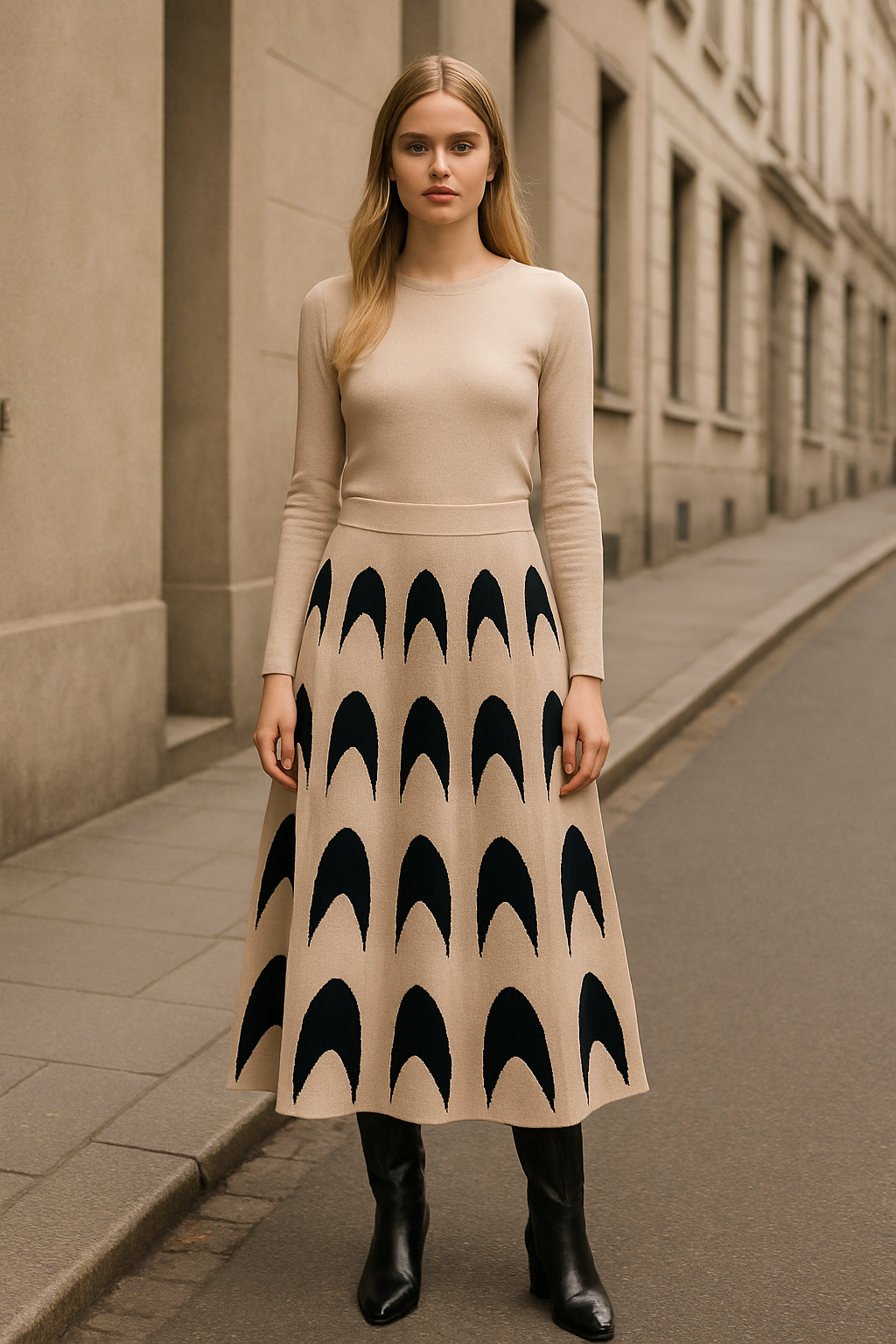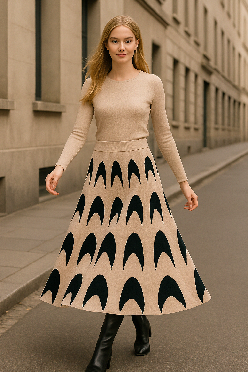 Με μαύρα σχέδια σε όλη τη φούστα μέσα στην πλέξη
