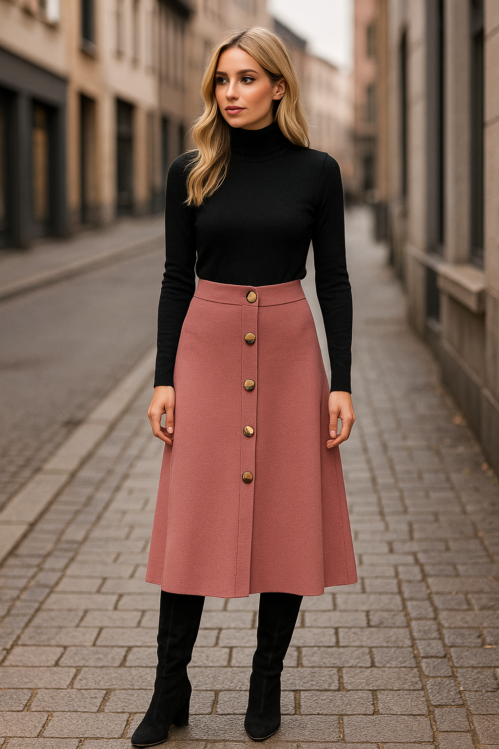 Φούστα midi από κρουστό πλεκτό με διακόσμηση