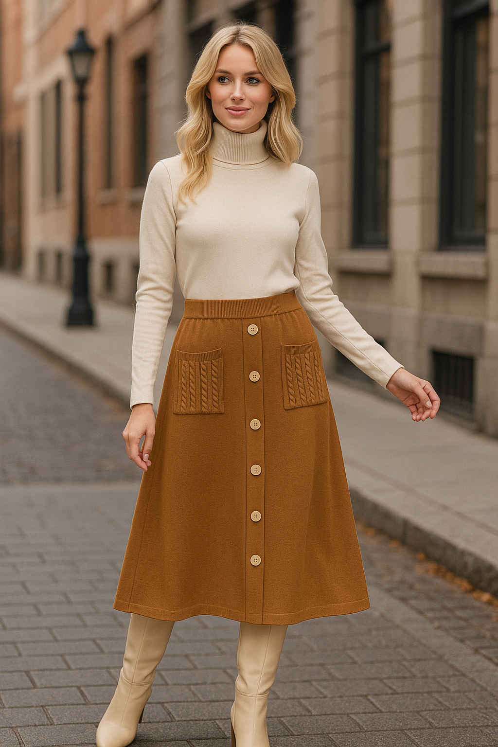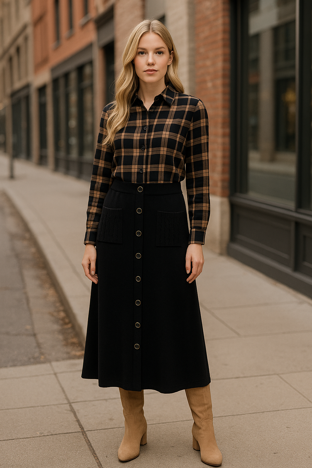 Η φούστα είναι midi ή maxi αναλόγως το ύψος της γυναίκας