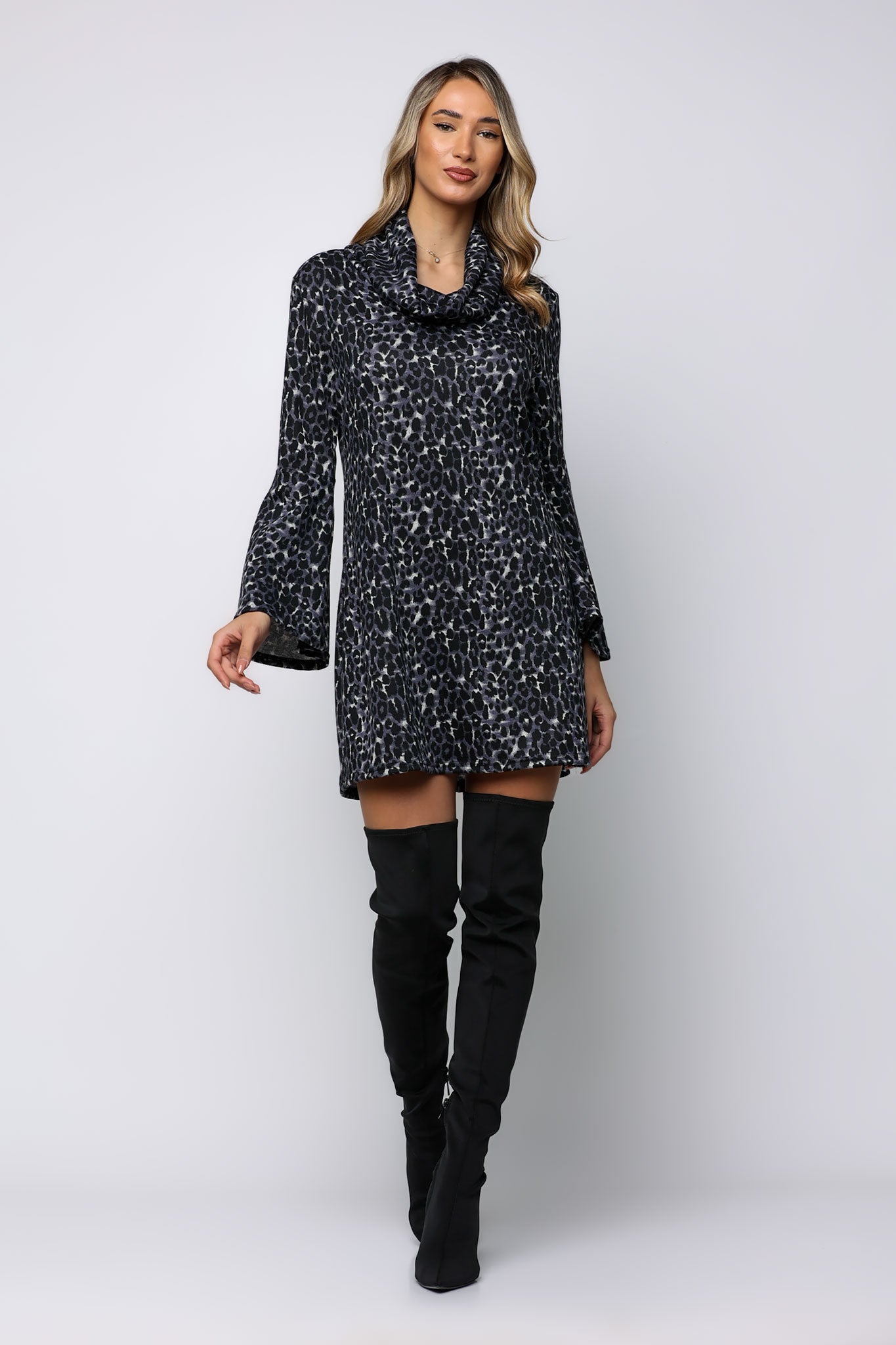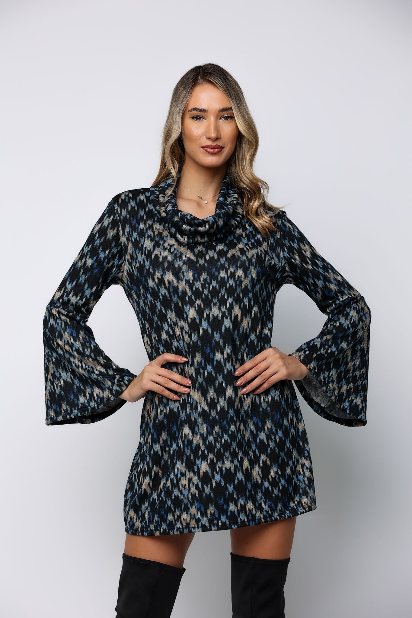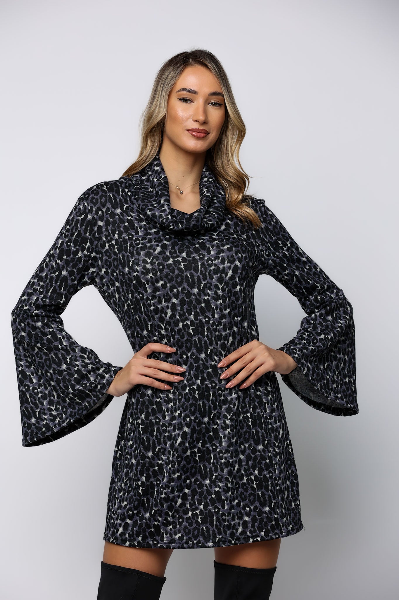Φόρεμα mini εμπριμέ λεπτό πλεκτό