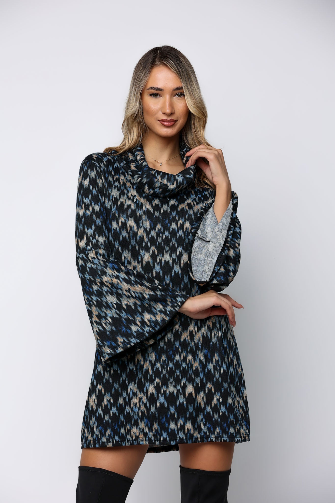 Λεπτό πλεκτό με εμπριμέ σχεδιασμό, πολύ ζεστό