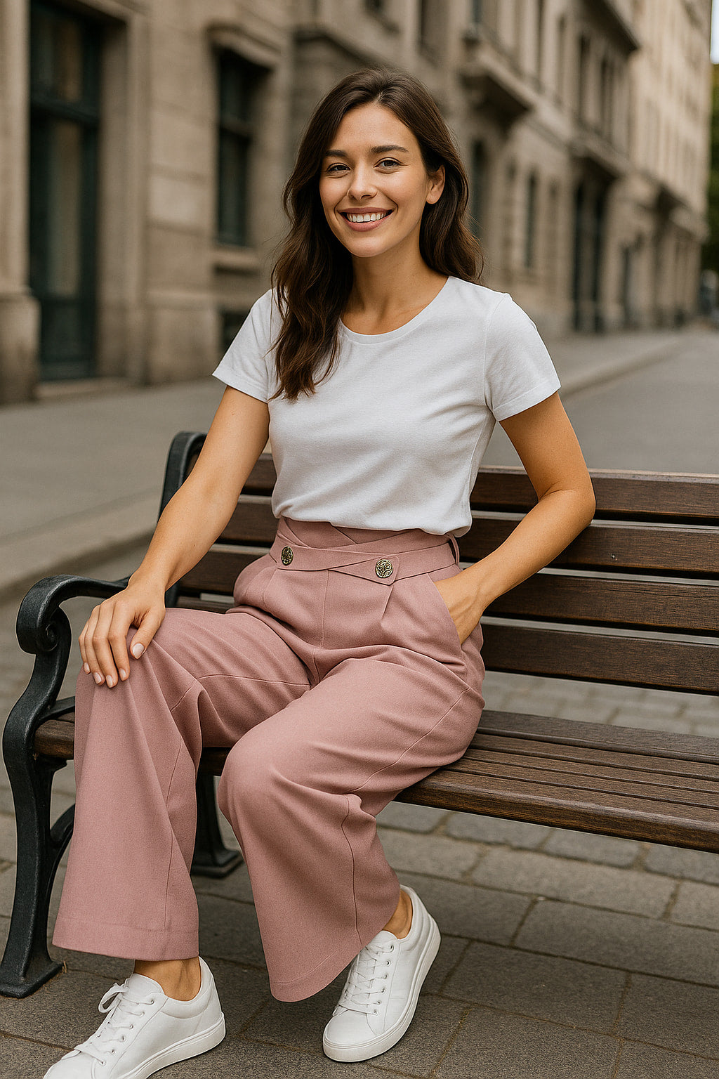 Παντελόνι κρεπ/rayon με σχεδιαστική λεπτομέρεια