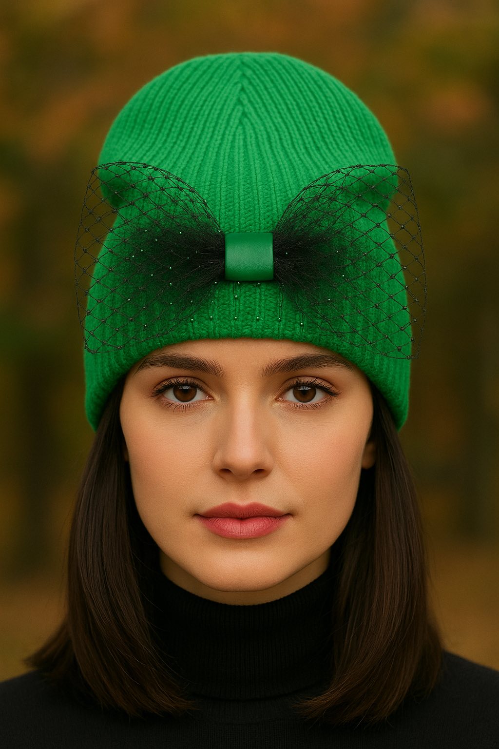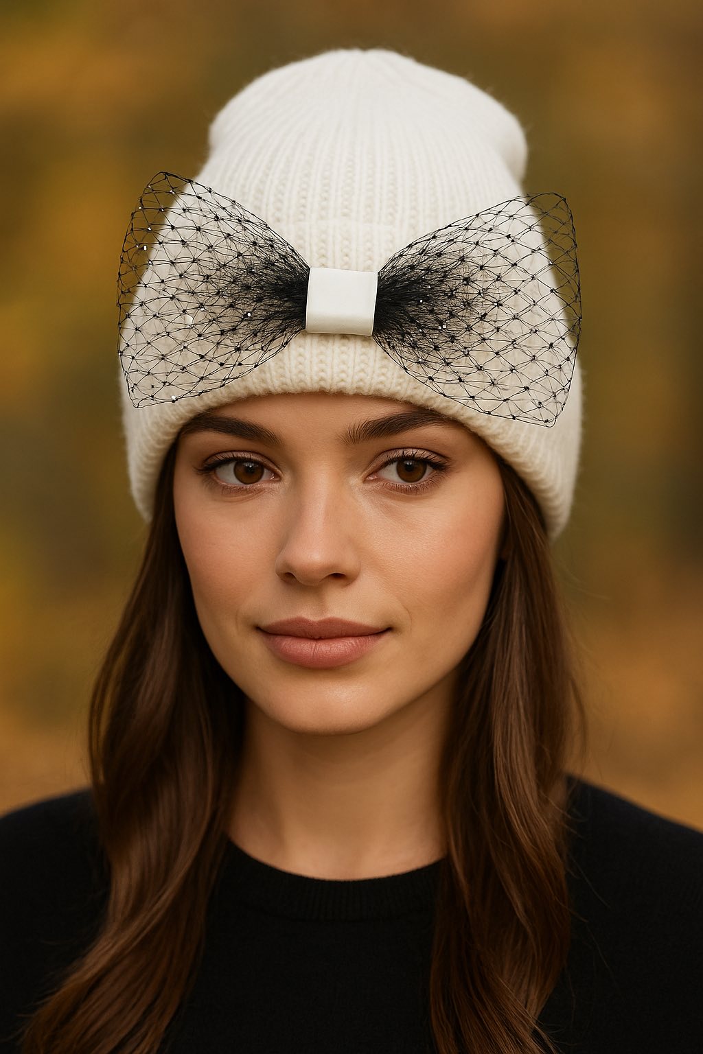 Με εντυπωσιακό διχτυωτό φιόγκο που εκτείνεται ως και το πίσω μέρος του σκούφου και διαθέτει strass