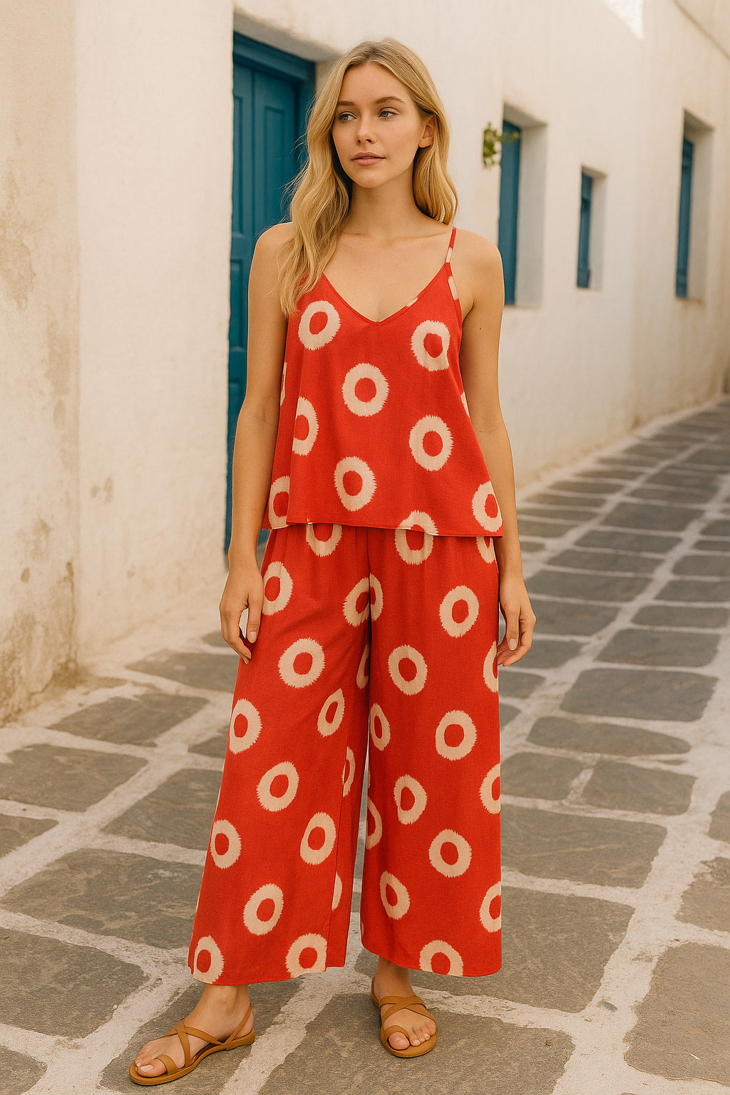 Σετ τοπ και παντελόνα printed βισκοζ/λινό