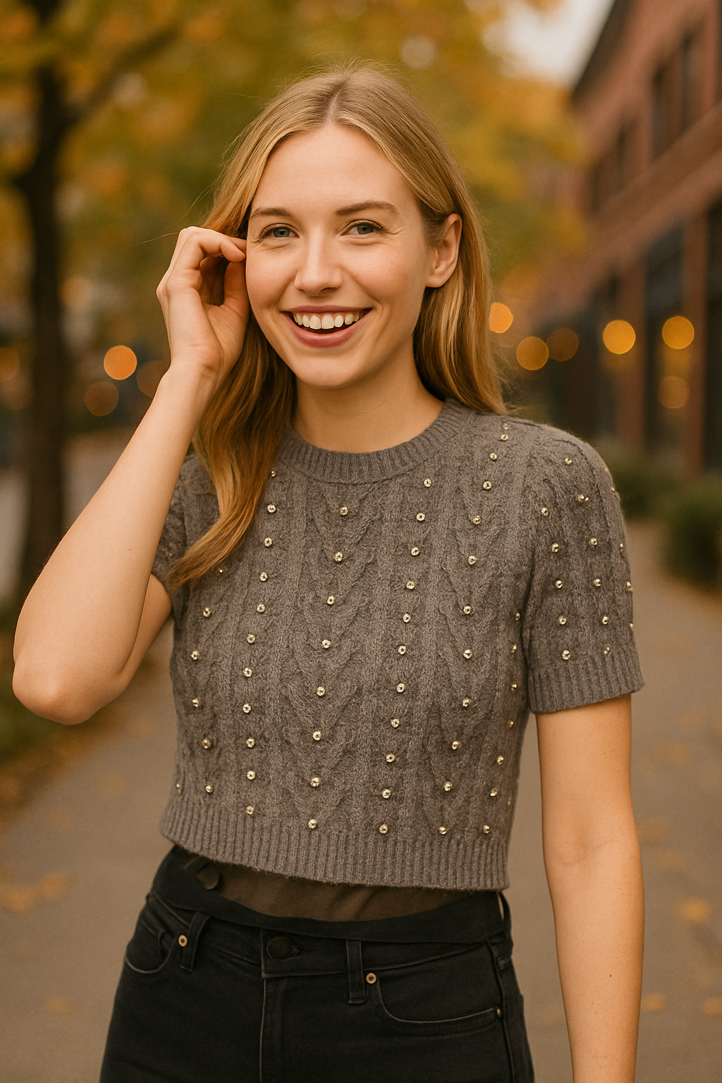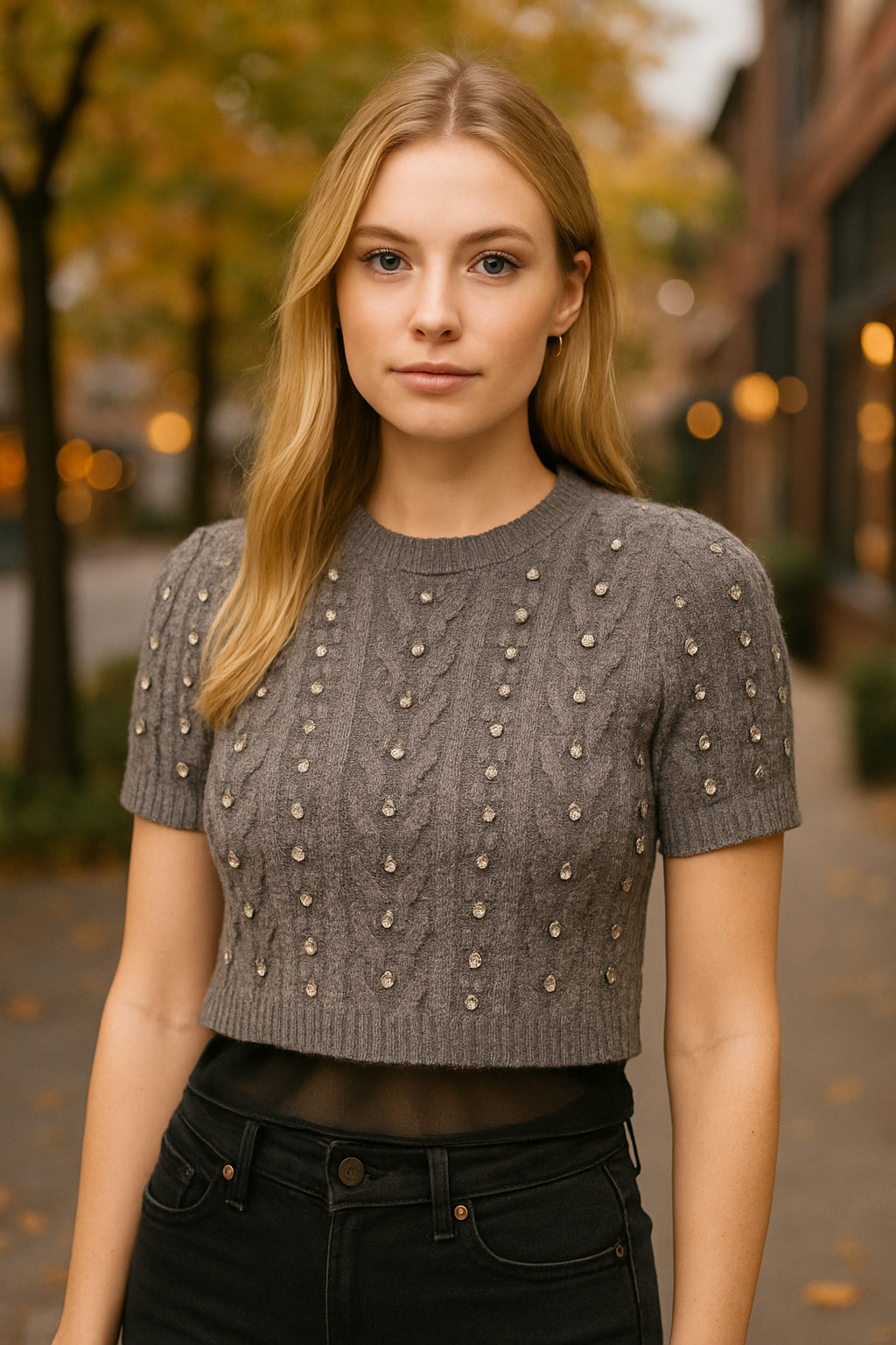 Με κοντά μανίκια διακοσμημένα με ασημί πέτρες