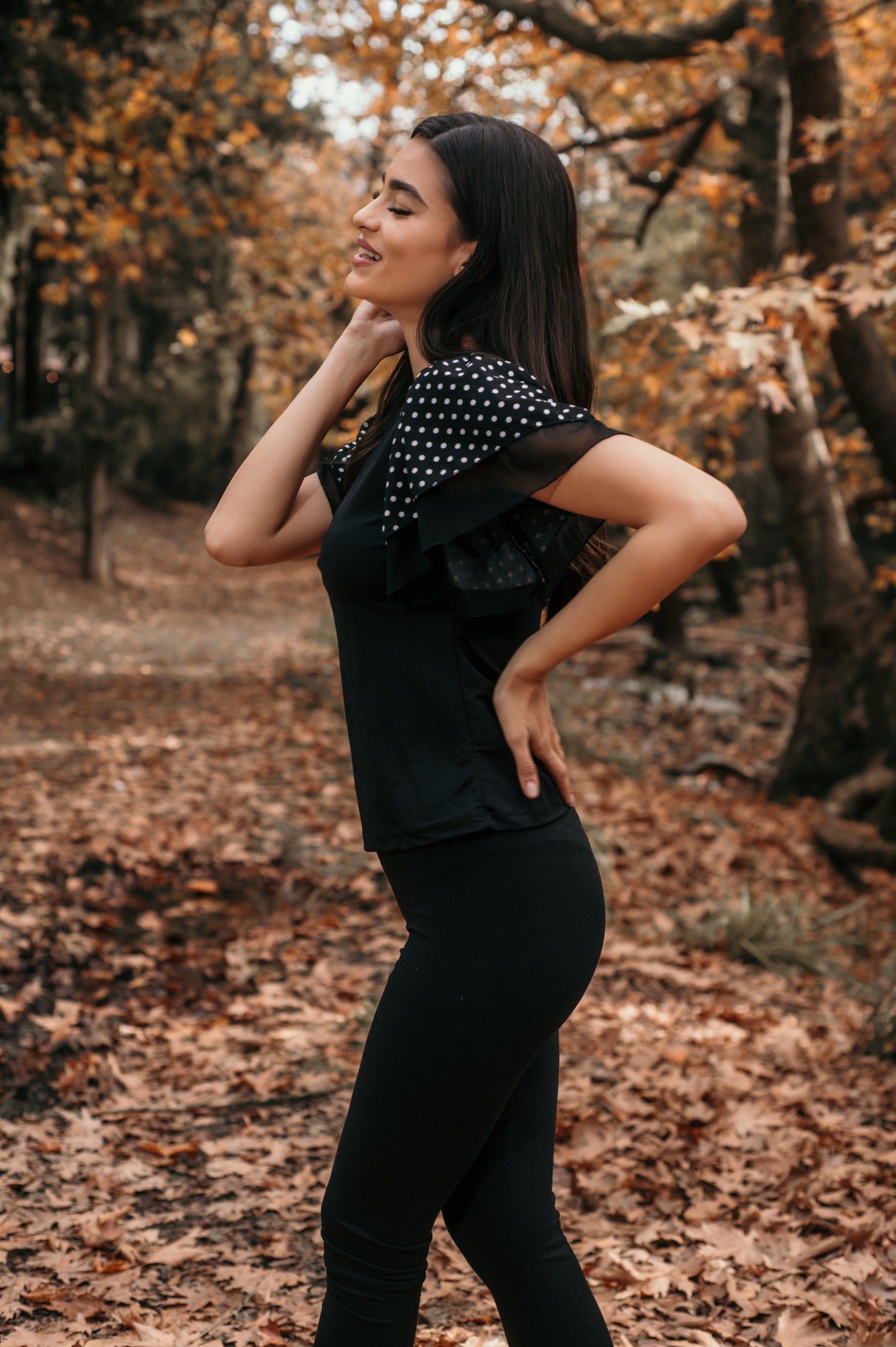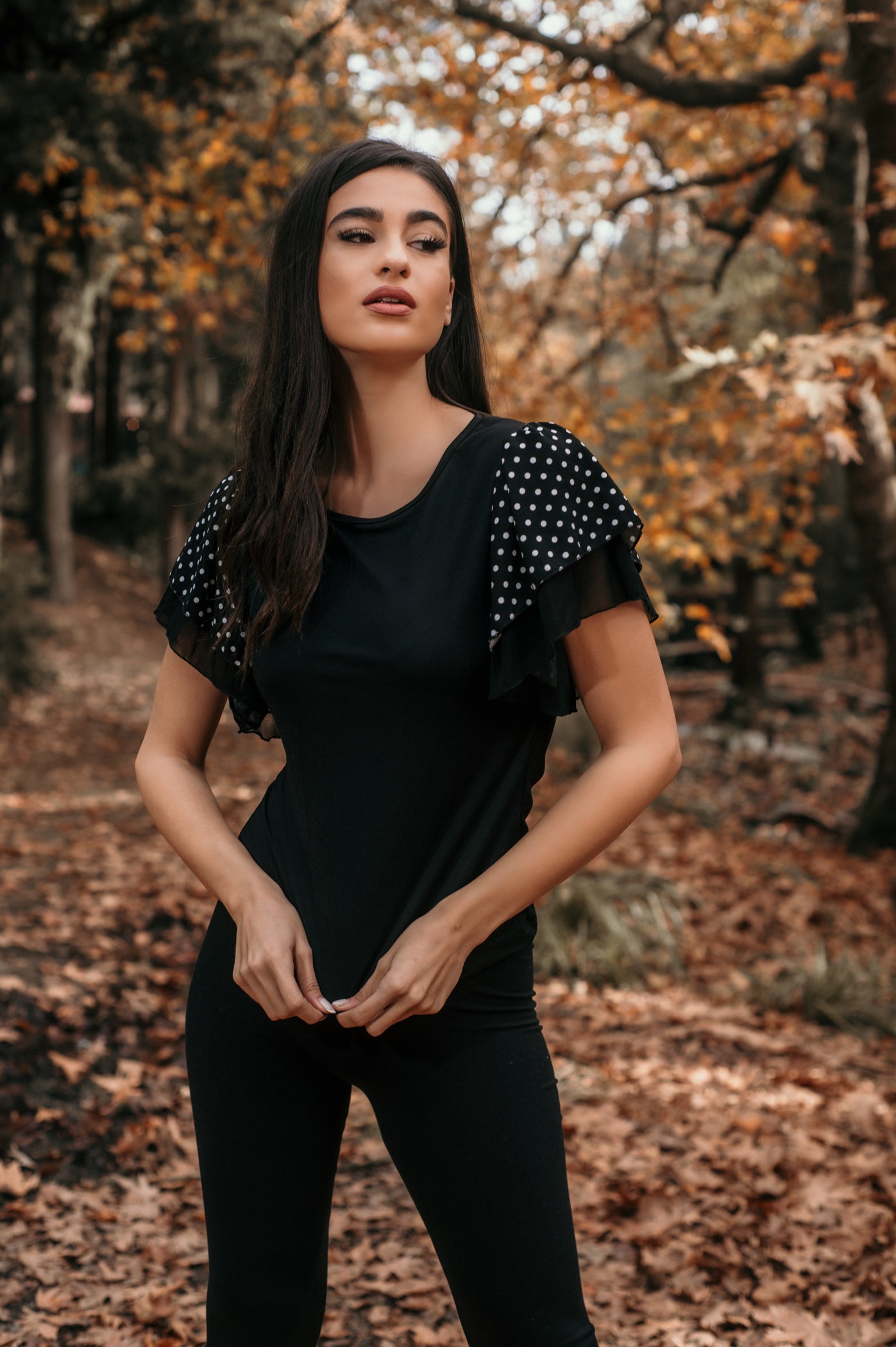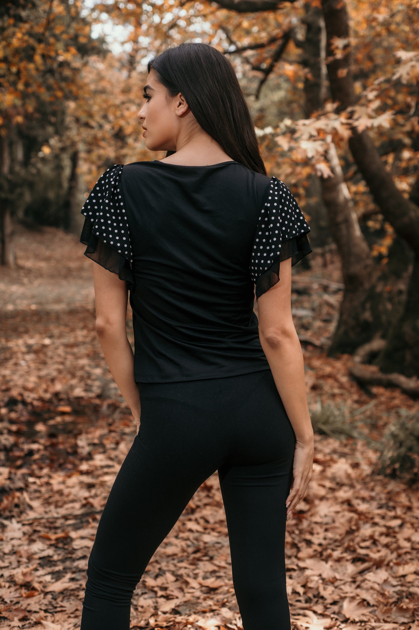 - με κοντά μανίκια φουσκωτά πουά και διαφάνεια